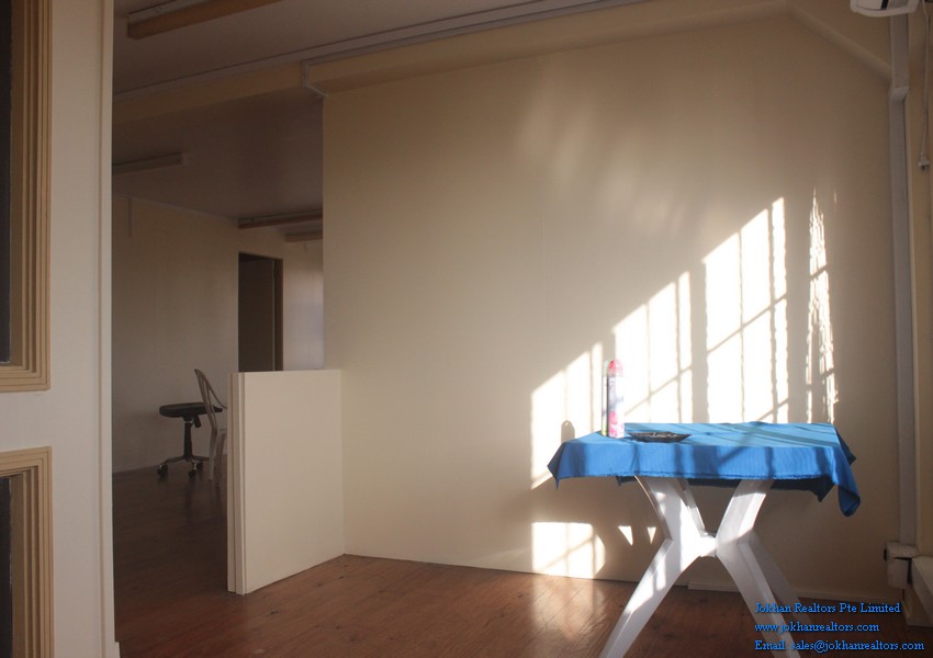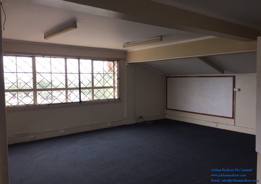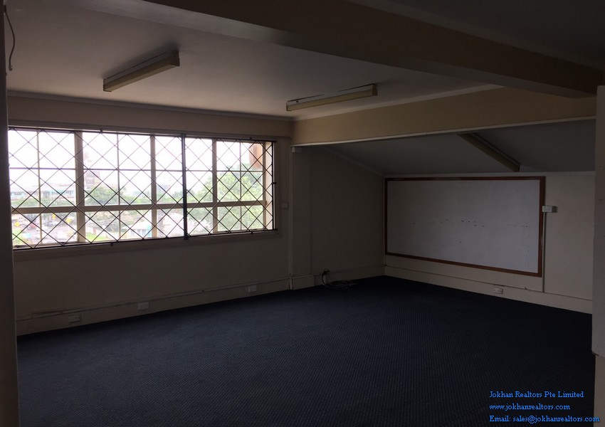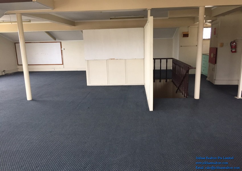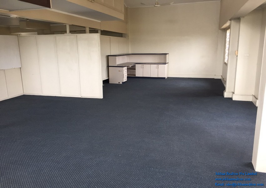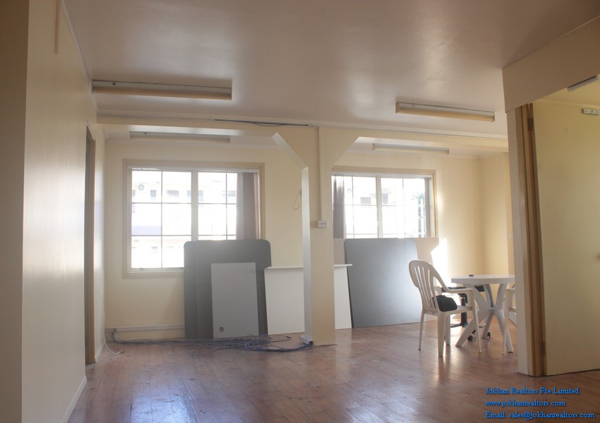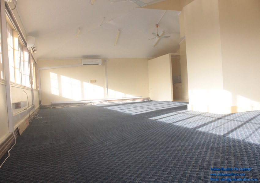 The office has wooden and carpeted floors and is located on the second floor of a commercial building. There are 2 restaurants , as well as a few shops a few steps away from the office.