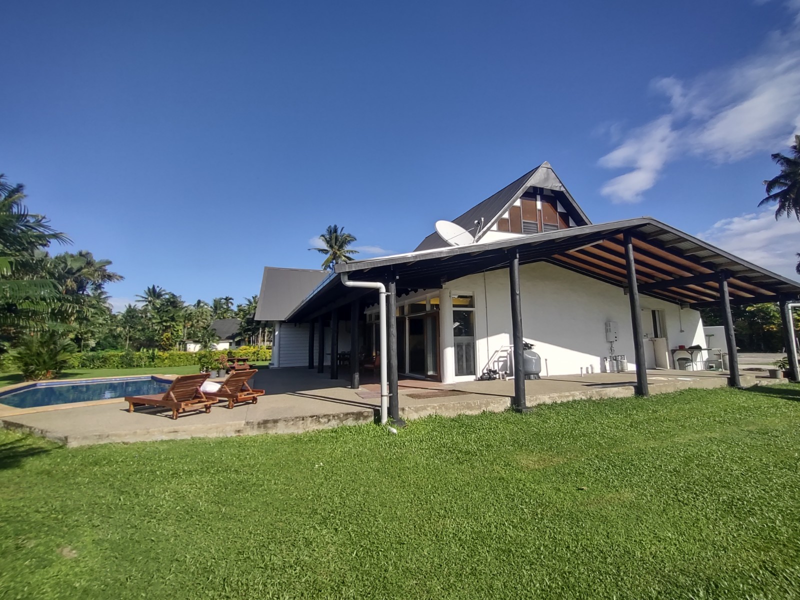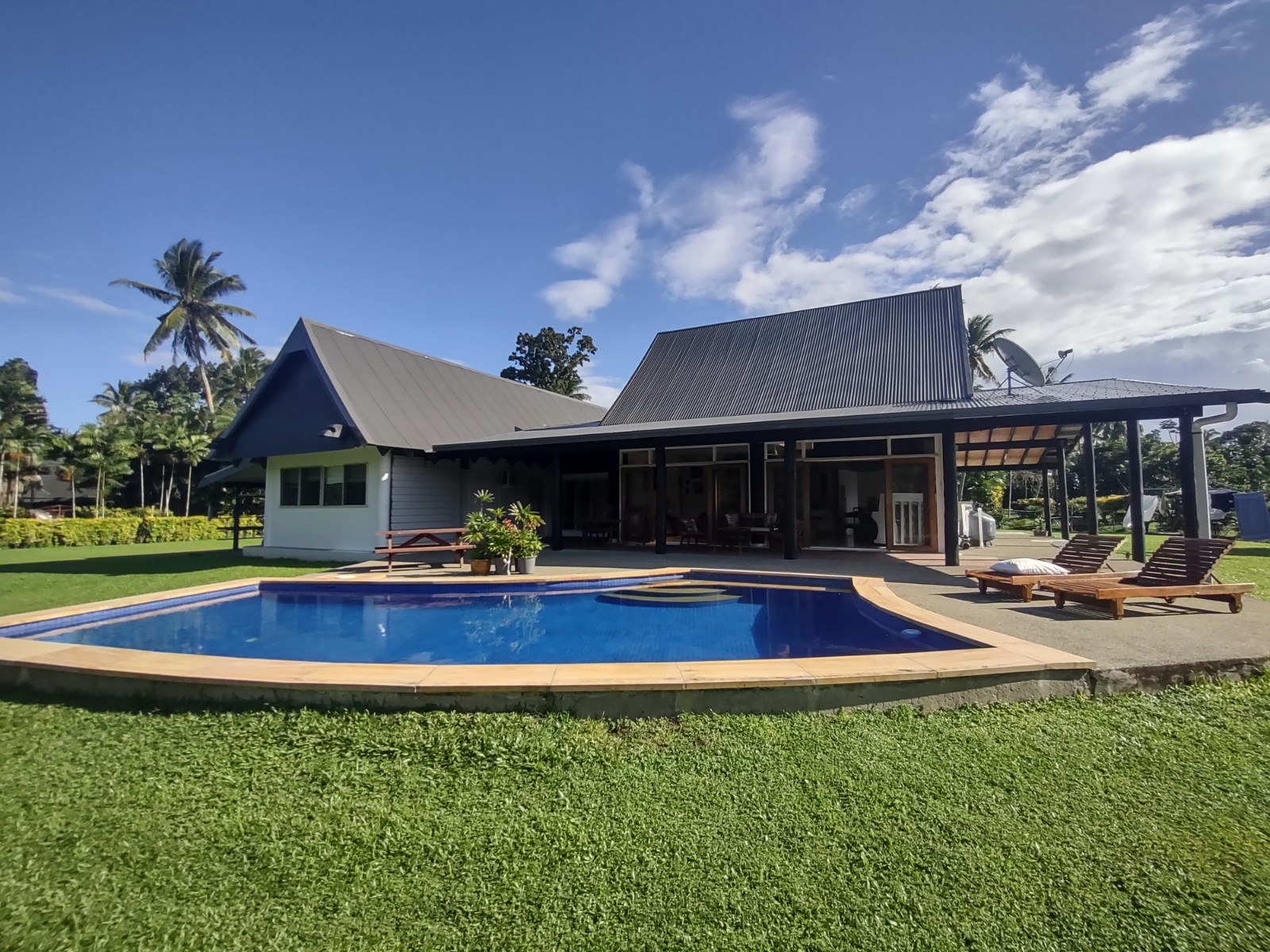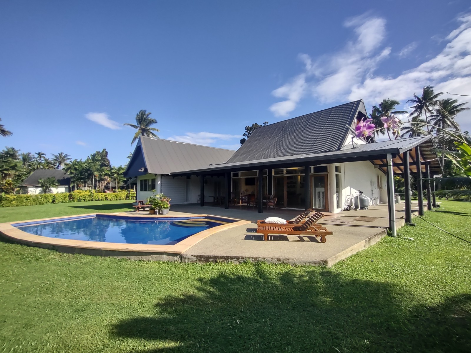 The open plan style living allows natural light and a breeze throughout the house , and the outdoor area is great for entertaining guests, or spending a lazy day by the pool.