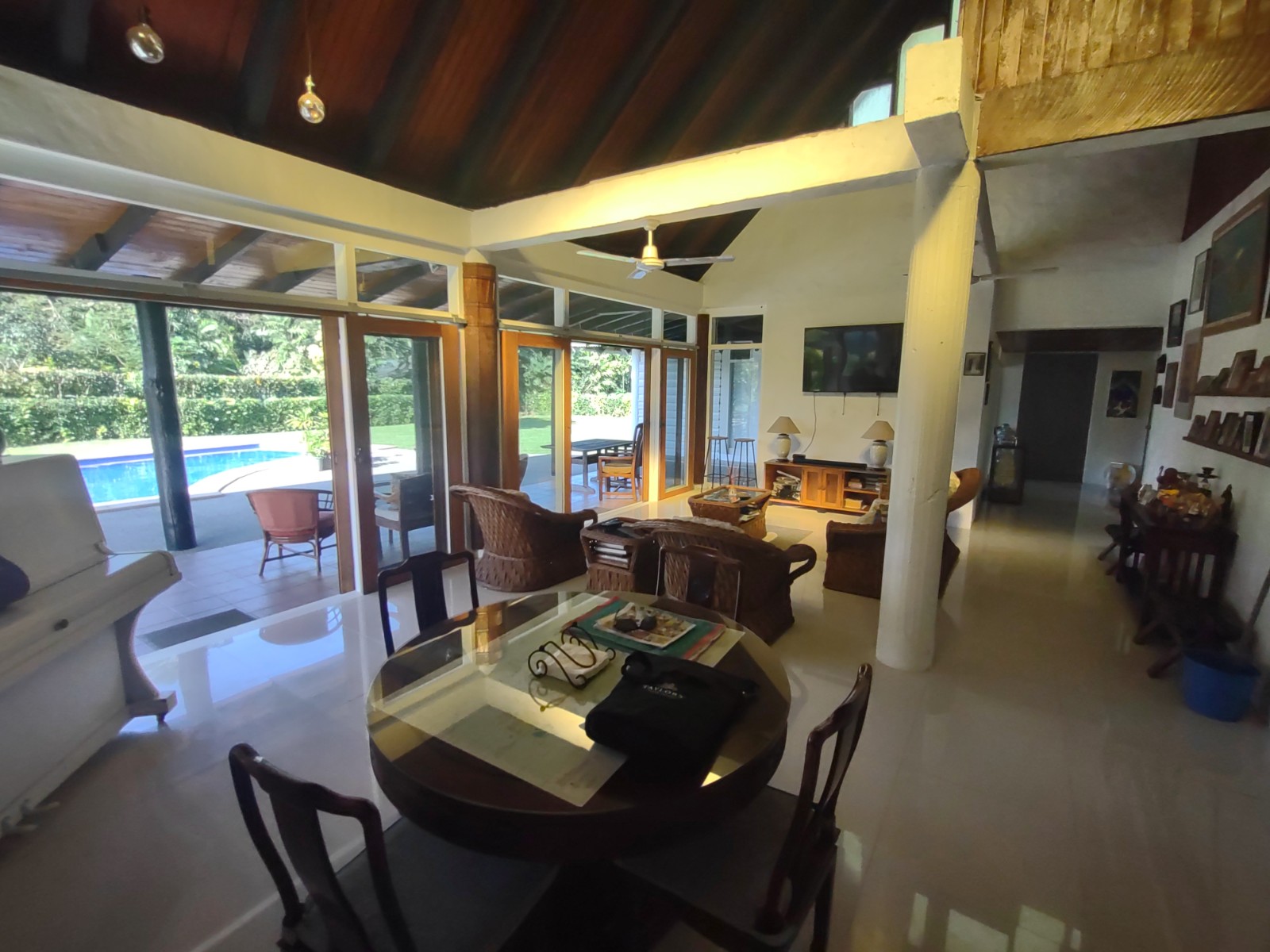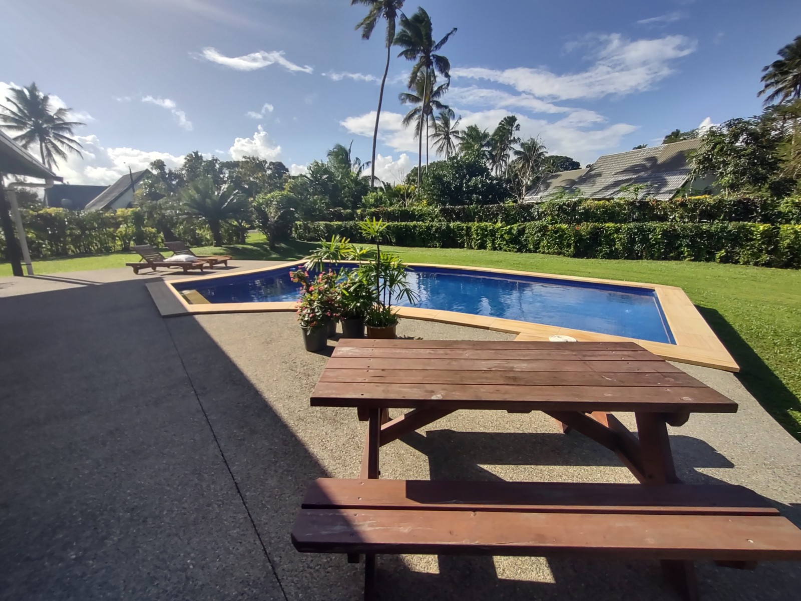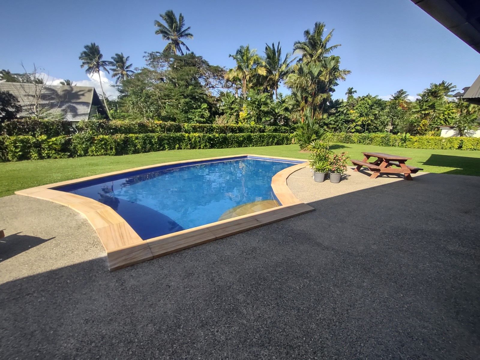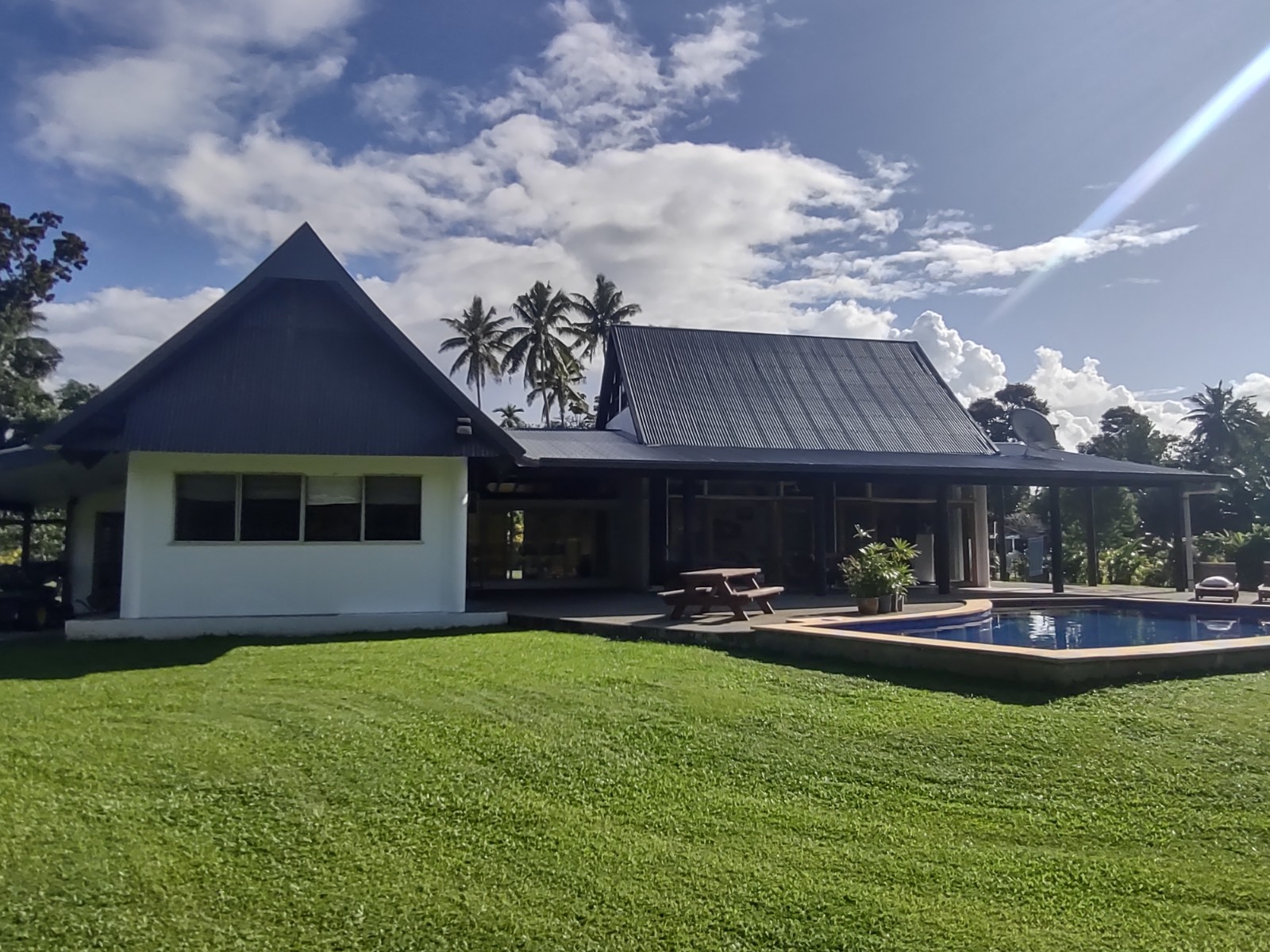 The open plan style living allows natural light and a breeze throughout the house , and the outdoor area is great for entertaining guests, or spending a lazy day by the pool.