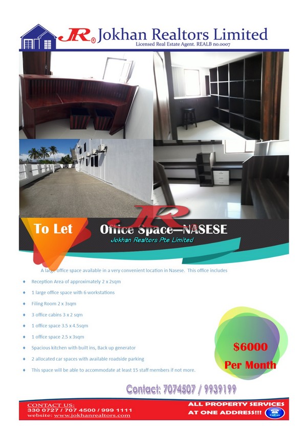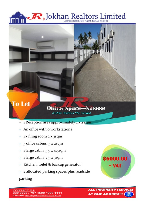 This modern and spacious office is perfectly positioned in a thriving area, surrounded by essential amenities such as Nasese Hospital, various major NGOs, supermarkets, and various dining options. Additionally, it is conveniently close to the Fiji Revenue and Customs Office, making it an ideal choice for businesses that value accessibility and a professional image.