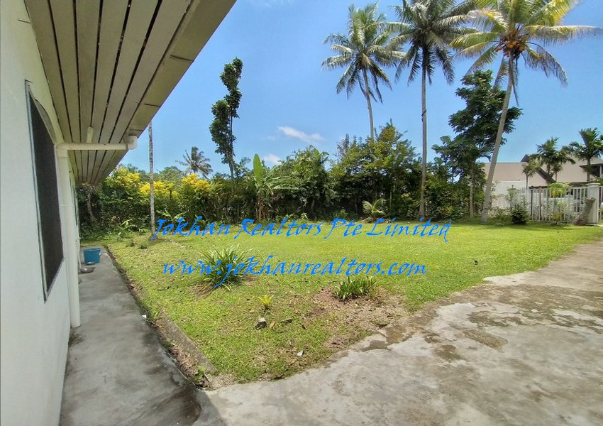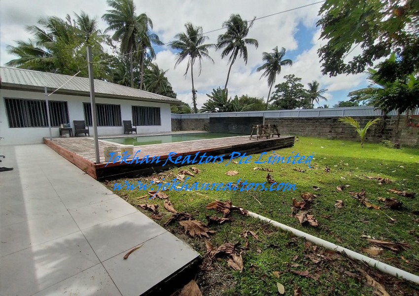 Large front compound and equally spacious backyard with swimming pool.